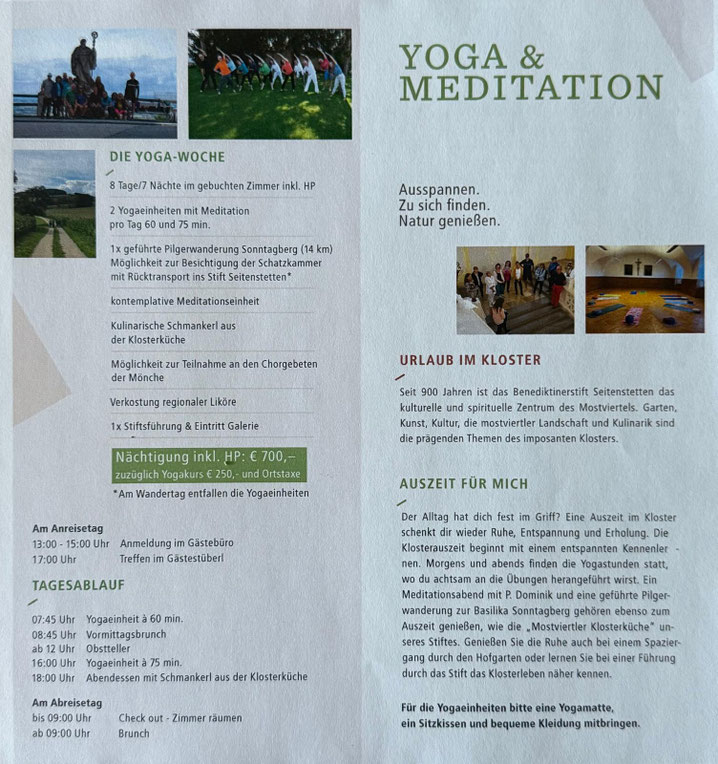 Yoga Retreat mit Mediation im Stift Seitenstetten